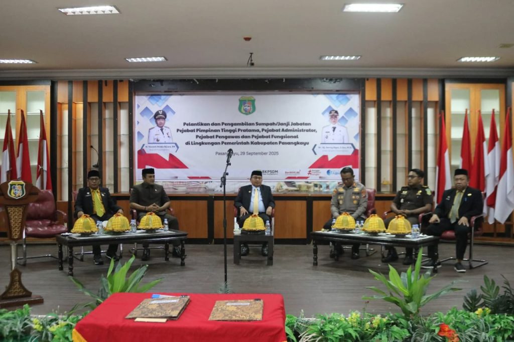 Pasangkayu, 29 September 2025 — Pemerintah Daerah Kabupaten Pasangkayu kembali melakukan pelantikan dan pengambilan sumpah jabatan terhadap sejumlah pejabat struktural dan fungsional dalam rangka penyegaran organisasi serta peningkatan efektivitas pelayanan publik. Kegiatan pelantikan dilaksanakan di Ruang Pola Kantor Bupati Pasangkayu, dan dipimpin langsung oleh Bupati Pasangkayu H. Yaumil Ambo Djiwa. S.H.